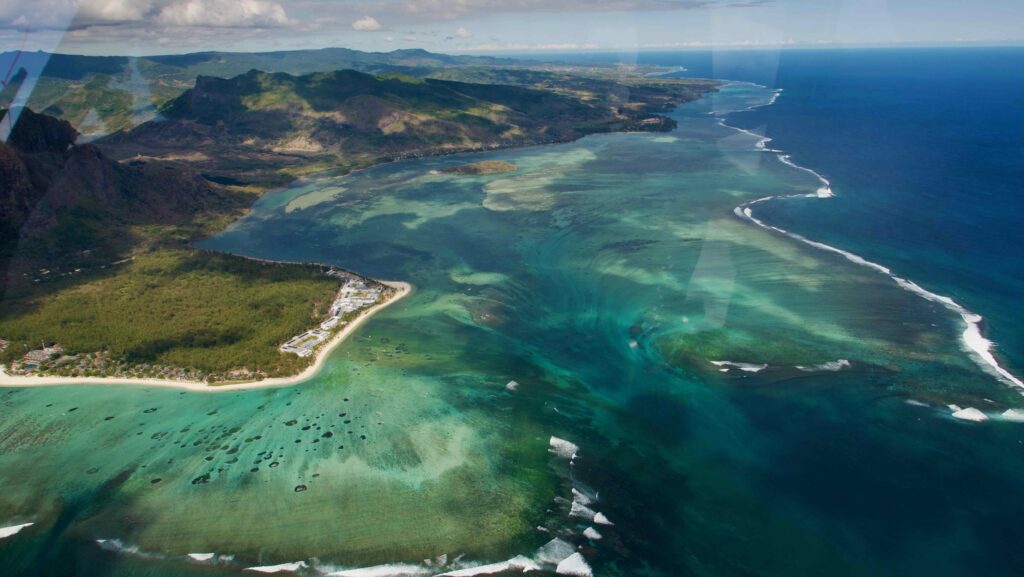 Voor een spectaculair kijkje op Mauritius boek je natuurlijke een privé-helikoptervlucht. Met als hoogtepunt een vlucht boven de beroemde ‘onderwaterval’ bij Le Morne; een optische illusie waarbij het lijkt alsof er een waterval onder water stroomt.