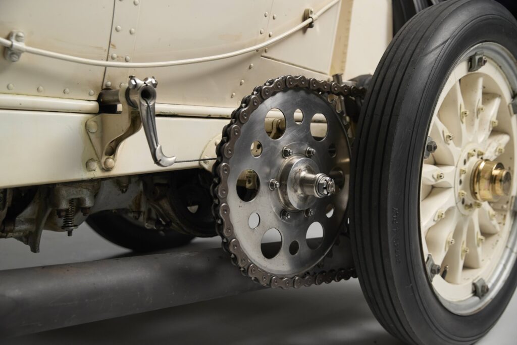 Maar bij Mercedes zagen ze nog wel wat meer potentie in deze auto en dus lieten ze hem in juli 1908 terugkeren naar de fabriek, waar hij werd uitgerust met een gloednieuwe motor. Dit werd een volkomen absurde 17,3-liter (!) viercilinder, goed voor 150 pk. Deze motor, met nummer 820, was zó groot, dat hij bijna zichtbaar was vanaf de voorkant van de auto en op dreigende wijze uit de voorste dwarsbalk tevoorschijn kwam! Het was een unieke motor, de enige in zijn soort ooit gebouwd. Een brute krachtbron die de auto maakte tot een soort mechanische sloopkogel — rauw, compromisloos, maar ook uitzonderlijk effectief. In september 1909 keerde de wagen dan ook terug naar Semmering en won opnieuw, dit keer met een verbeterde recordtijd van 7 minuten en 7 seconden, gemiddeld 84,3 km/u —een record dat maar liefst 15 jaar bleef staan.